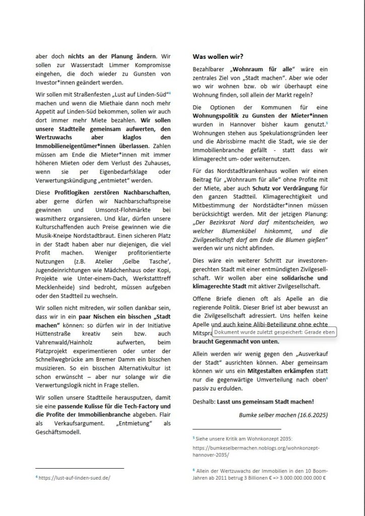 Uns erreichte dieser offene Brief von der befreundeten Initiative Bumke selbermachen: Wer macht die Stadt? https://www.instagram.com/p/DLFIMjCsomR/?utm_source=ig_web_copy_link
